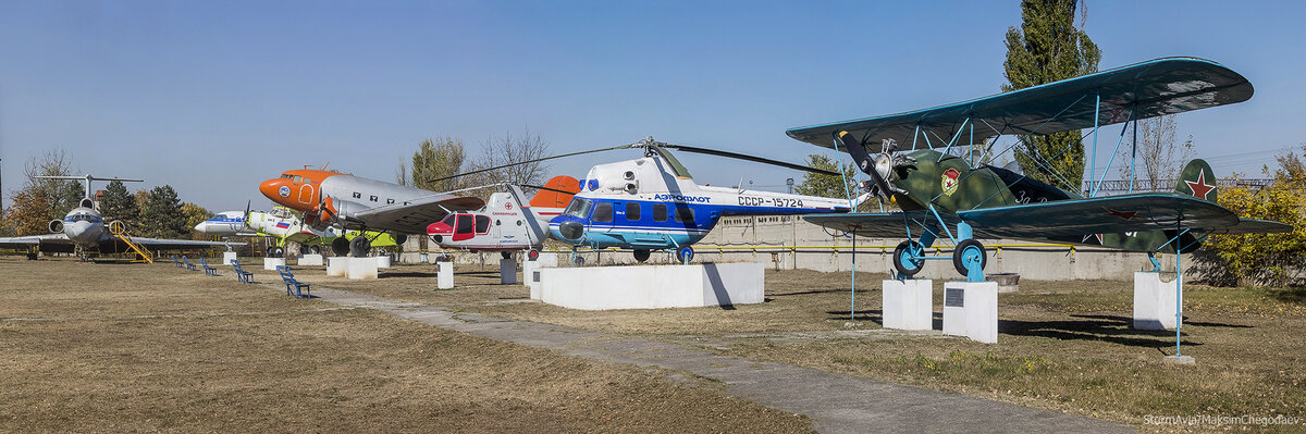 Первый кого мы можем увидеть пройдя через КПП - это легендарный биплан ПО-2. С него и началась история ремонтного завода, в 1938 году на территории аэропорта Мин. воды были организованы авиамастерские, где производился ремонт этих самолетов.