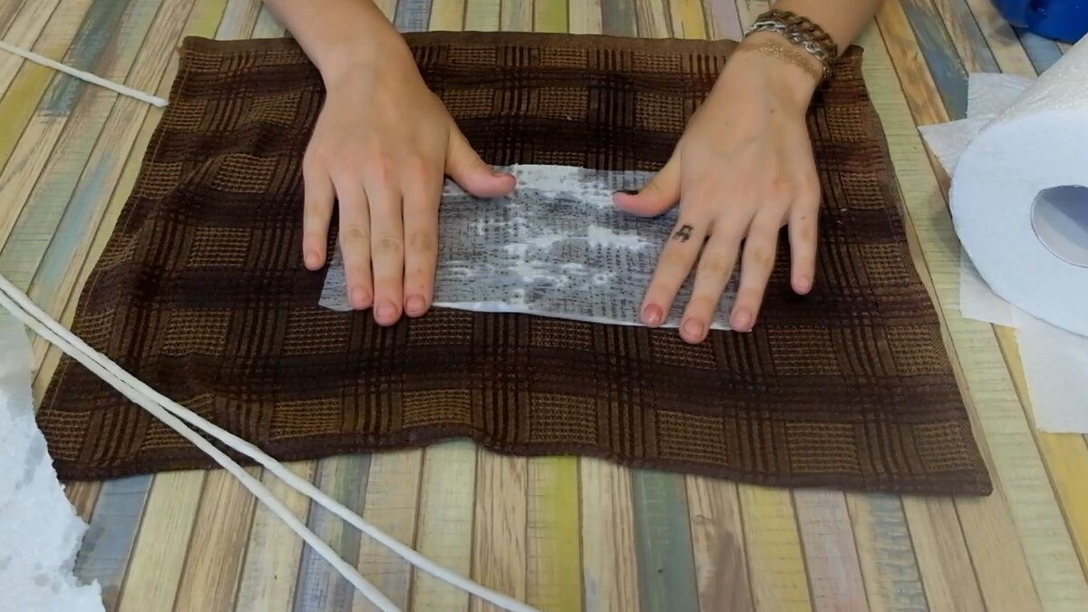 Для скручивания нитей из бумажных полотенец использую мокрое полотенце.