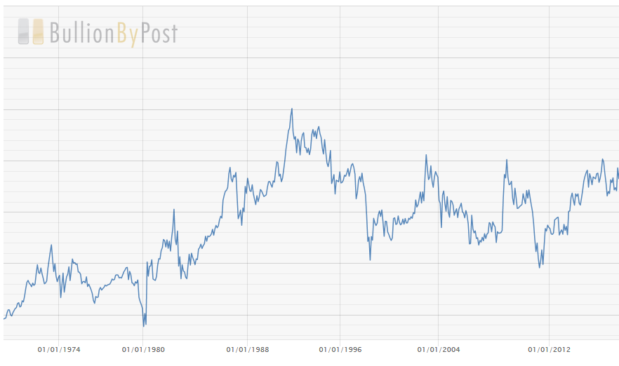 После перехода к рыночным ценам на драгоценные металлы и открытия большого количества серебряных рудников, серебро начало стремительно дешеветь и к 1991 году это соотношение достигло 100.
