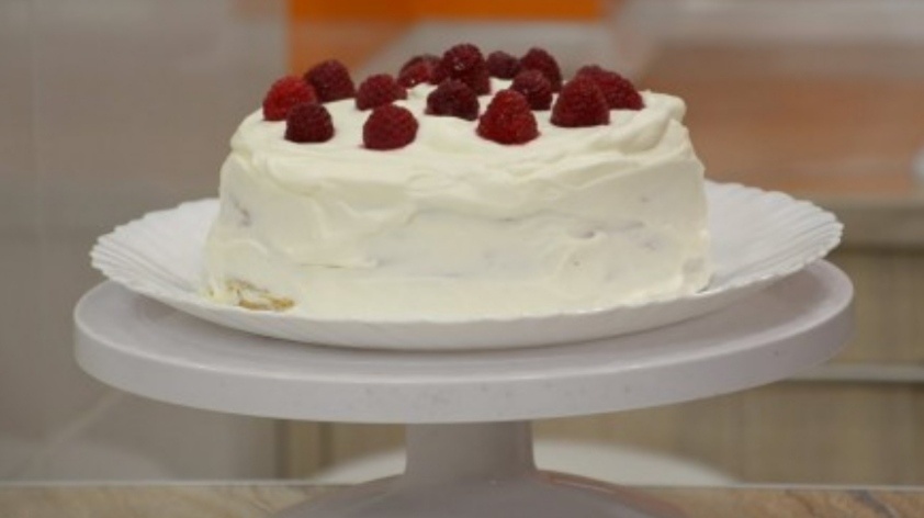ИНГРЕДИЕНТЫ: Тесто: Начинка: Для украшения: Сахарная пудра 40 гр. Процесс приготовления: 3. Подготовим начинку. Творог смешиваем с ванильным сахаром и тщательно разминаем вилкой. Добавляем варенье. Перемешиваем. 4. Собираем торт. Берем блинчик, смазываем творогом. Накрываем следующим блином, начинка и так до последнего блинчика. 5. Последний блин (верхний) смазываем только вареньем. Убираем торт в духовку, разогретую на 190 градусов, выпекаться 10 минут. Оставляем остывать. 6. Готовим сливочный крем. Миксером взбиваем сливки и сахарную пудру. Должен получиться густой крем. 7. Обмазываем наш торт кремом и украшаем ягодами. 8.Приятного аппетита.