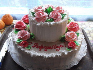 Охлажденные белки взбить с 1.5ст л сахара и ванилью, затем добавить ореховую смесь и хорошенько вымешать до образование однородной массы. Белковое тесто выливаем в две одинаковые формы, которые выстилаем пергаментной бумагой, и выпекаем в разогретой духовке 1.5 – 2 часа при температуре 150-160град.