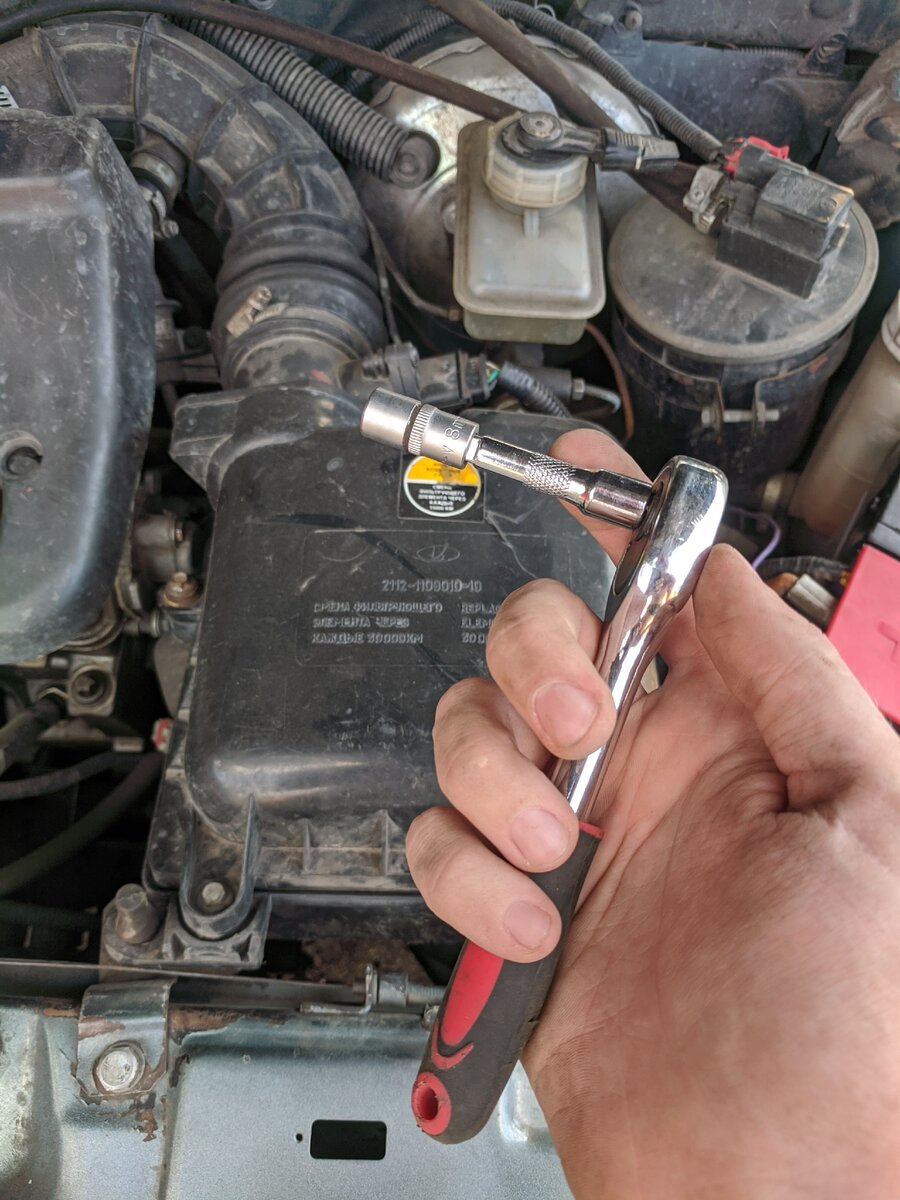 Нам понадобится: Новый воздушный фильтр, крестовая отвертка, трещотка, удлинитель и головка на 8 Расположение воздушного фильтра Замена воздушного фильтра 1. Откручиваем 4 болта трещоткой на 8 или крестовой отверткой, в зависимости, что у вас 2. Снимаем фишку с ДМРВ. Снизу есть язычок, прижимайте его и легким движением снимаете. Фишку тянете на себя 3. Рекомендую открутить хамутик c гофры для того, чтобы не перегибать ее. Делать это необязательно Снимаем наш старый фильтр (3-4 фото). Теперь нужно правильно установить новый Установка Обязательно! фильтр нужно установить правильно по направлению стрелки. Но перед установкой желательно протереть тряпкой всю накопившуюся пыль Для удобства переворачиваем фильтр, смотрим в каком направлении идут гофры и устанавливаем. Пройдитесь пальцами по контуру, чтобы фильтр целиком поместился. Надеваем крышку, наживляем каждый болт. Далее закручиваем, крышка плотно притянет фильтр Сборку делаем в обратном порядке: закручиваем болты, ставим фишку