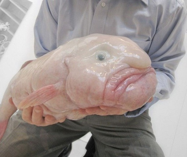У этой рыбёшки отсутствует плавательный пузырь, так как на больших глубинах, где давление в десятки раз больше, чем у поверхности, плавательный пузырь не работает. Так, на глубине 800 м давление в 80 раз превышает давление на уровне моря. Рыбы-капли обитают на глубинах 600 - 1200 метров у побережья Австралии и Тасмании, также на данный момент существует угроза исчезновения этого вида. Из-за своей угрюмки рыба-капля стала популярным мемом. Рыба-капля очень странное существо, по внешним признакам не относится к классу рыб. Это объясняется тем, что в глубоководных водах сильное давление, и для того, чтобы выжить в такой среде рыба-капля эволюционировала. Его длина достигает до 70 см., на нём нет чешуи и плавников, может весить по 10 кг. Грустное же выражение лица объясняется межорбитальным пространством шире диаметра глаза, по той же причине у рыбы не имеется мускулатуры, она просто плывёт по течению, широко раскрыв пасть в ожидании попадающей в неё еды. Ест она мелких бе