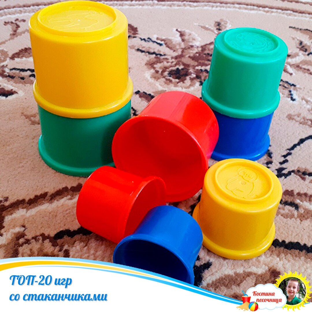 Стаканчики, которые вкладываются один в другой - это одна из тех игрушек, которая будет "взрослеть" вместе с вашим малышом, начиная с 6 месяцев! Простая, многофункциональная, компактная, бюджетная - это всё о ней! По-сути это обычные формочки, которые можно вложить друг в друга, как матрешки. Они бываю круглой, квадратной и многоугольной формы. Стаканчики прекрасно подходят для игр во время купания и в песочнице. С ними можно учить не только РАЗМЕР и ЦВЕТ, понятия "больше-меньше", "выше-ниже", но и осваивать навыки СЧЕТА.
