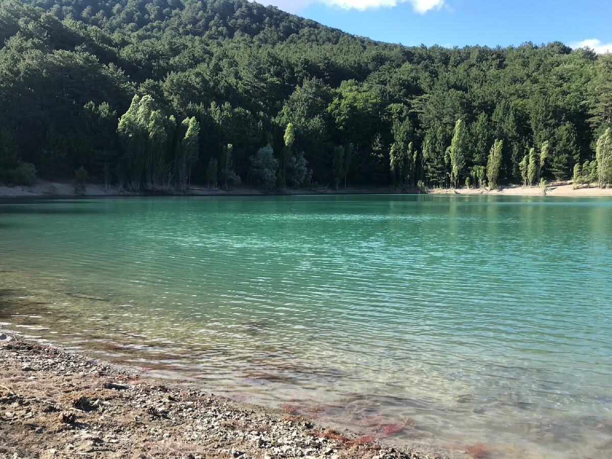 Это озеро - одно из самых красивых озер Крыма. Вода в нем очень чистая и цвета бирюзы, переходящей в лазурь. Озеро искусственного происхождения. строили его работники совхоза Таврида, на месте табачного поля, да,да в Крыму выращивали ароматический табак. На самом деле, называется Юбилейное, в честь 30 летия победы, данные взяты из архива запрудненской школы. Оно наполняется, чистейшей, родниковой водой, из источника, я лично пила эту воду, не прям с озера, конечно, а из канала родника и это было очень вкусно. Невероятное место, краски природы -нереальные, сочная зелень, голубая вода, крымские серые скалы. а ещё у озера есть своя книга отзывов, она лежит, в специально созданном, для неё почтовом ящике! Озеру приписывают магические свойства. Поговаривают, что искупавшись в нем можно снять с себя любую негативную энергетику. А тот кто одинок в течение года встретит свою истинную любовь, если поплавает в его водах 💓 Как добраться до озера? Доезжаете до поселка Верхнее З