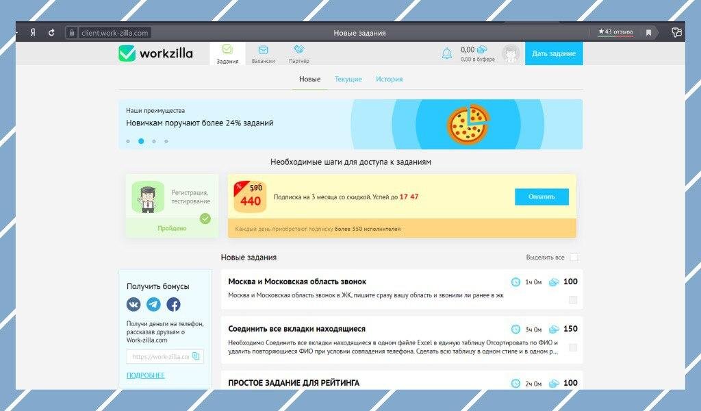 В этих площадках пробовали свои силы 60% фрилансеров. При регистрации и исполнитель, и заказчик платят сервису за то, чтоб разместить вакансию или искать подходящую работу. Сумма не большая, за тот период, на который дается доступ, исполнители легко возвращают эти деньги. Заказчикам тоже выгодно, потому что они ставят невысокую стоимость заданий и компенсируют оплату своего абонемента.