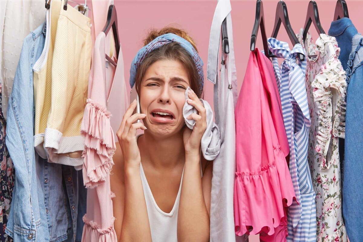 . Решила я пойти на встречу. И чтоб всех краше там блистать И сделать классный этот вечер Пошла одежду выбирать. . Открыла шкаф-купе огромный, Копаюсь, роюсь, «Всё не то! В это не влезу. Это не модно. И платья норм ни одного». . Решила заглянуть на полку Огромную в самом верху. Кусочек вижу я футболки, «Вот точно! Я ее хочу!» . Тяну ее из горы шмоток, И вот она почти в руках... Но как повалит с этих полок! В одежде я погребена. . Я еле выбралась из тряпок, Мое лицо стало грустнеть. Слеза обиды стала капать... «ОПЯТЬ МНЕ НЕЧЕГО НАДЕТЬ!»