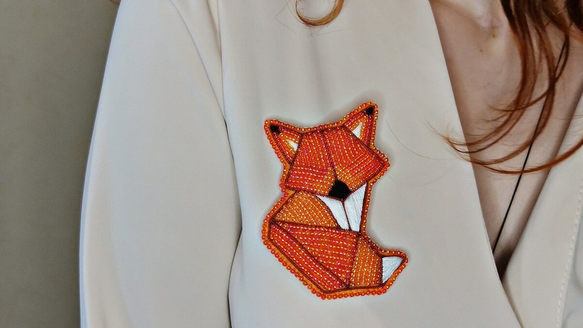 Брошь Лиса из бисера своими руками.