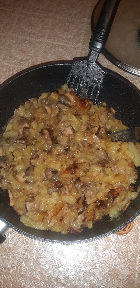 Жареная картошечка с белыми грибами по собственному рецепту.