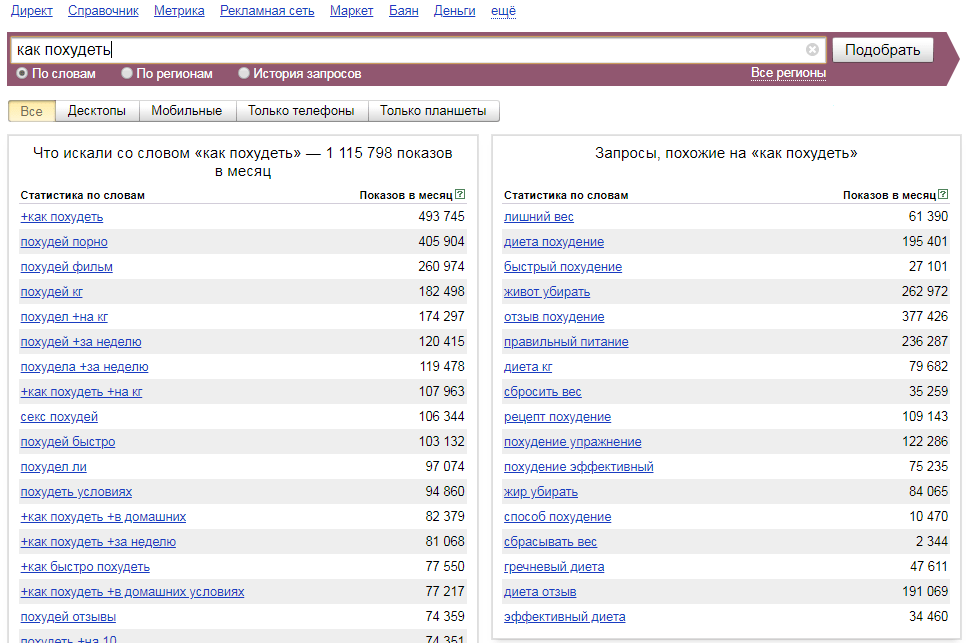 - Если работать с популярными запросами, например, «Как похудеть», то для сайта придется писать больше 1000 статей, чтобы справиться с конкуренцией.