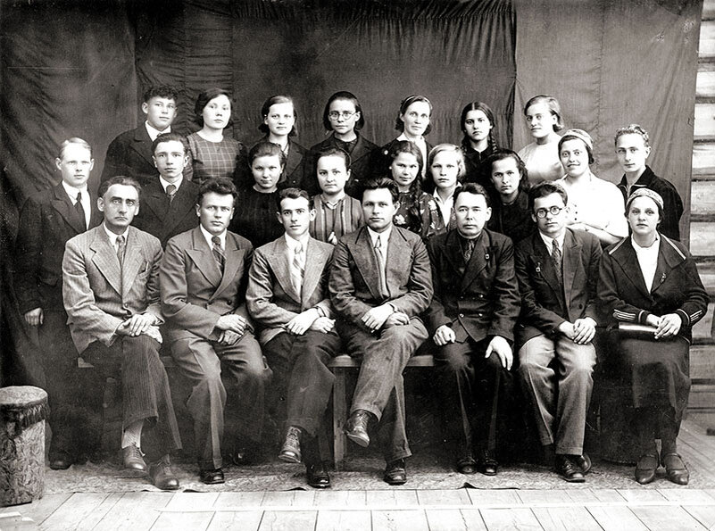 Какие прекрасные, интеллигентные, одухотворённые лица: ученики и учителя. На этом снимке запечатлены выпускники 10 класса Игарской средней школы № 9 1940/1941 учебного года.