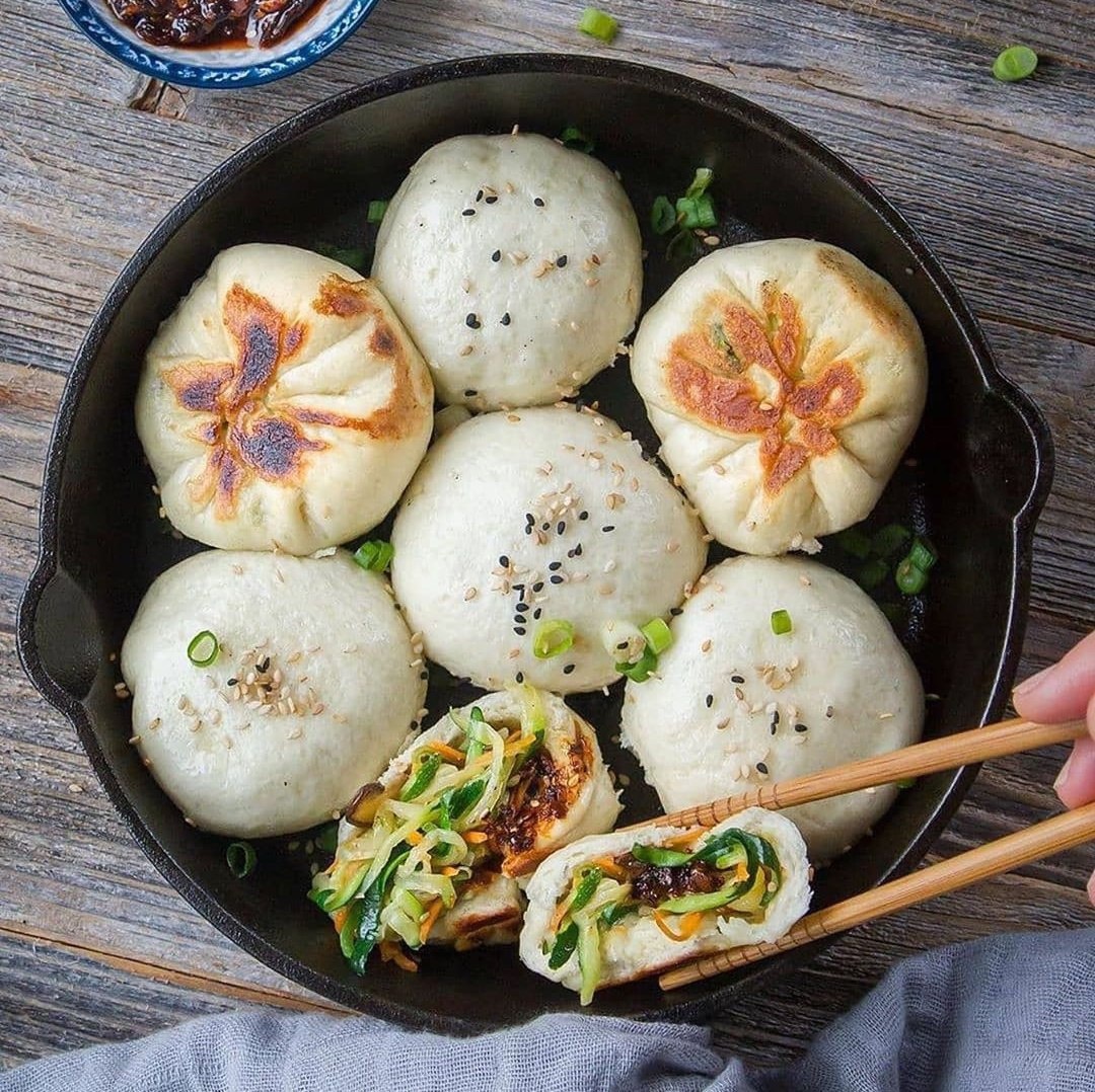 🌿ОВОЩНЫЕ БУЛОЧКИ🤤 ⠀ ✅Ингредиенты для теста: ▪️300 гр муки ▪️3 ч.л. сахара ▪️1 ч.л. активных сухих дрожжей ▪️Щепотка соли ▪️160 мл воды или растительного молока ▪️3 ч.л. растительного масла ⠀ ✅Ингредиенты для начинки: ▪️2 крупных измельченных кабачка ▪️1 средняя измельченная морковь ▪️100 гр нарезанных и обжаренных грибов ▪️Мелко нарезанный зеленый лук, соль, белый перец - по вкусу ⠀ 👩🍳Как готовить: ▶️Смешайте все сухие ингредиенты для теста. Постепенно добавьте влажные ингредиенты и замесите до образования мягкого теста. ▶️Переложите тесто на очищенную поверхность и месите руками в течение 4-5 минут. Положите тесто в миску, накройте крышкой и оставьте на 30 минут. ▶️Для начинки смешайте кабачок, морковь, обжаренные грибы, мелко нарезанный зеленый лук и приправьте солью и перцем. ▶️Разделите тесто на 14 равных частей. Раскатайте каждый кусочек в лепешку. Поместите ложку начинки в середину и запечатайте. ▶️Готовые булочки обжарьте на небольшом количестве растительного масла
