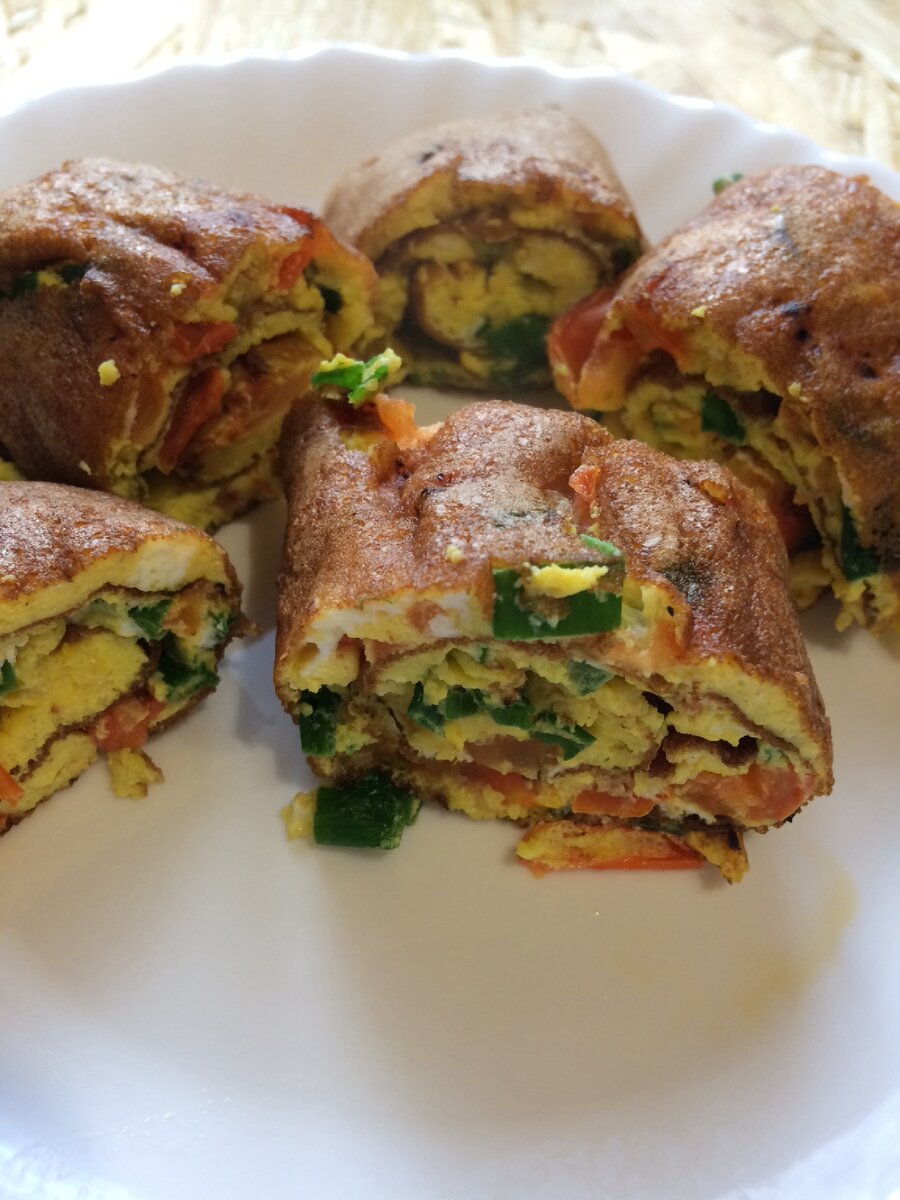 📋Ингредиенты: 🥄яйца - 2 штуки 🥄молоко (у меня 3,2%) - 1 столовая ложка 🥄помидор - 1 маленький (50 грамм) 🥄зелёный лук - 1 небольшой пучок 🥄соль и перец - по вкусу Приготовление: 🔹взбить яйца с молоком, солью и перцем. 🔹лук, помидор нарезать очень мелко и добавить к яичной массе. 🔹смазать сковороду каплей масла. Вылить половину (❗️) смеси. 🔹готовить, пока низ не схватится , верх остаётся жидким. 🔹свернуть омлет в рулет от края до края, оставить на сковороде. 🔹на свободную часть сковороды вылить оставшуюся часть смеси и также готовить , пока не схватится низ. 🔹свернуть омлет , начиная скручивать с готового рулетика. 🔹сдвинуть к центру весь рулет, готовить ещё несколько секунд. 🔹выложить готовый ролл на тарелку и нарезать на маленькие роллы. Вся порция содержит всего 180 ккал Б/Ж/У 15/12/4 Приятного аппетита! 💛 #ппеда #ппрецепты #пп #ппзавтрак #ппроллы #правильноепитание