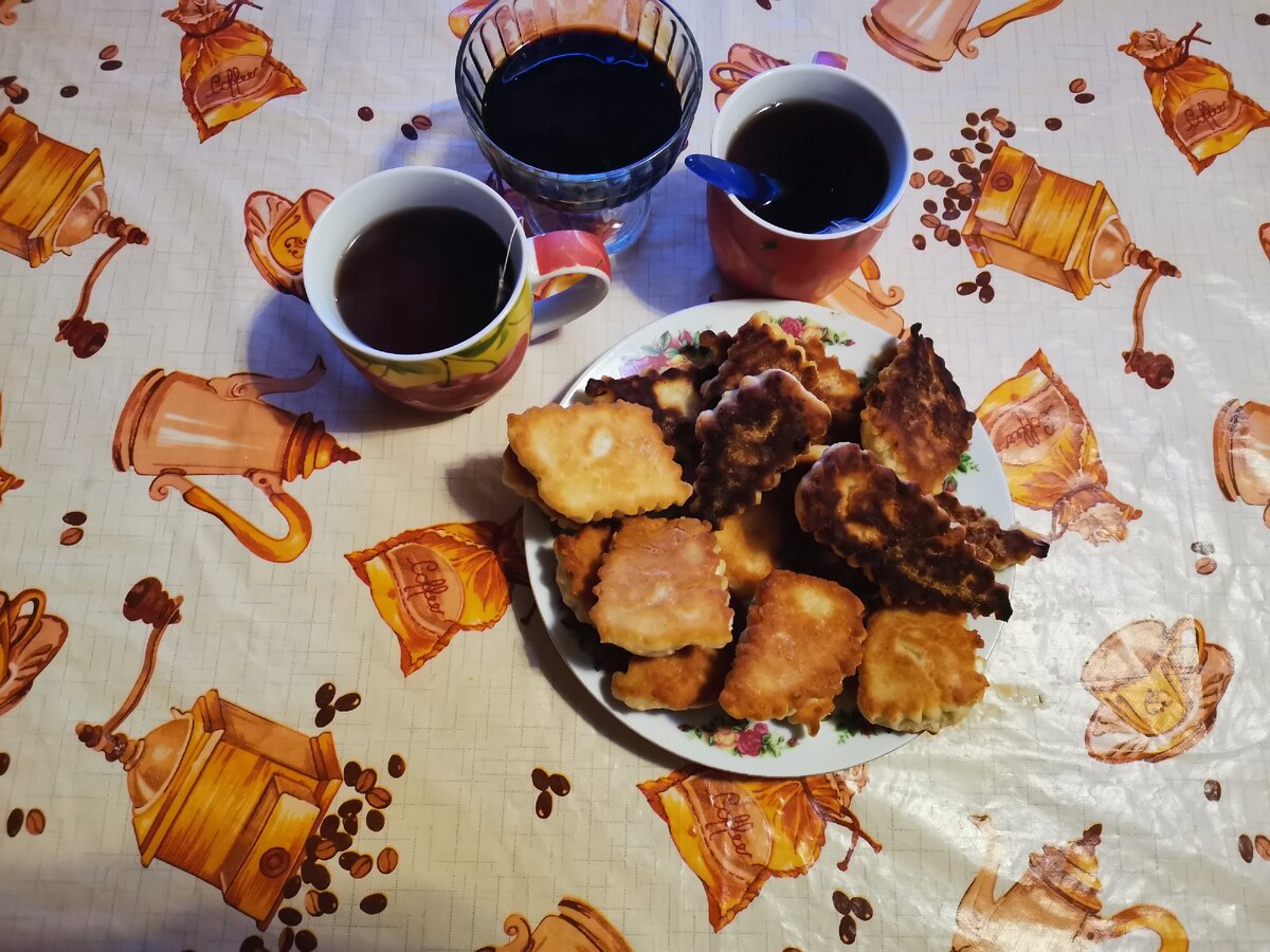 Здравствуйте, уважаемые читатели! Сегодня хочу предложить вам неимоверную вкуснятину из Кухни Дастархастана, называются творожные баурсаки. Это волшебная страна с обалденными рецептами. Давайте попробуем! Вот, что получилось! Конечно, можно было сделать их кругленькими, но нам сегодня захотелось поиграть с фигурным ножом. Ингредиенты: творог - 200гр., мука - 200гр., яйца - 2шт., сахар - 2 ст.л.. соль - 1ч.л., сода - 1ч.л., растительное масло 20 гр., и масло для жарки В миску с творогом разбиваем яйца Сюда же добавляем сахар, соль, соду Хорошенько все перемешать Добавим растительное масло и также все перемешать Постепенно просеиваем муку Должно получиться вот такое тесто, слегка липкое Раскатаем лепешку. Примерно толщиной 0,5 сантиметра Разрезаем на фигурки или кружочки (можно сделать стаканом, кружки получатся ровненькие) Нам сегодня захотелось фигурных ромбиков. Жарить на среднем огне под крышкой Вот такие вкусняшки получились. Сегодня мы будем их кушать с вареньем Приятного аппетита
