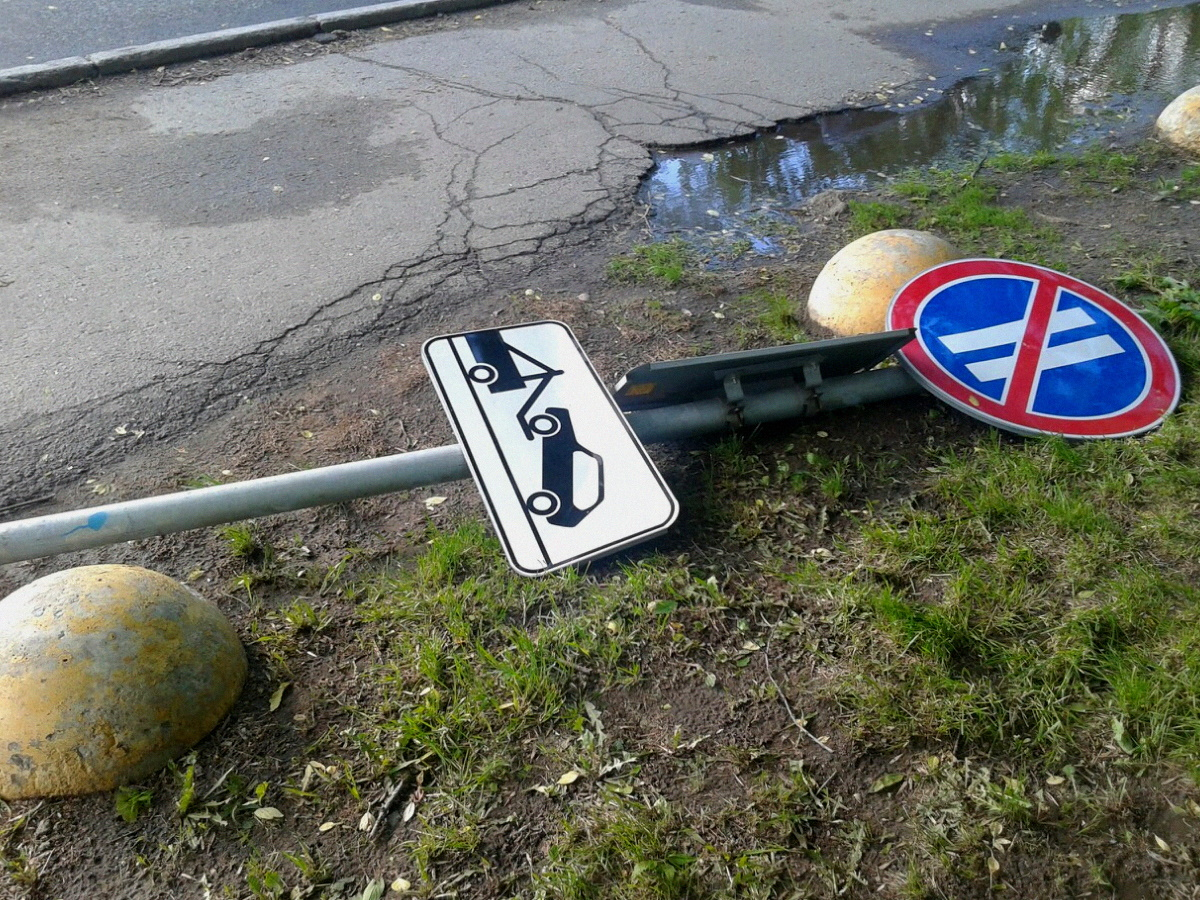 Не каждый знак на дороге монтируется на надёжных и долговечных фонарных столбах или устанавливается на устойчивых к внешним механическим воздействиям растяжках. Большая часть знаков устанавливается на весьма тонких конструкциях из шатких и легко ломающихся трубочек. Данные дорожные знаки весьма часто случайно сбиваются во время дорожно транспортных происшествий или их сбивает габаритный грузовой транспорт во время маневров. Однако что ждёт водителя, если вдруг он повредит дорожный знак? Какое грозит наказание, что написано в правилах дорожного движения, что предусмотрено в УК РФ по этому поводу? Об этом и многом другом пойдёт речь в рамках данной статьи. Что говорит ПДД В соответствии с п. 1.5 правил дорожного движения водителям не разрешается повреждать, деформировать, загрязнять или каким-либо иным другим способом препятствовать видимости информации на поверхности установленного дорожного знака. Если всё-таки порча дорожного знака из-за аварии или по неаккуратности произошла, то оп