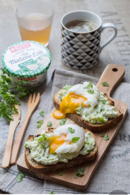 Тост с авокадо, мягким сыром и яйцом всмятку. Быстрый и легкий рецепт, который мне действительно понравился. Ингредиенты 4 ломтика хлеба 4 яйца 1 авокадо 150 г мягкого сыра чеснок базилик петрушка соль перец 1. Отварить яйца в подсоленной воде 5 минут. 2. Поджарить ломтики хлеба. 3. Раздавить авокадо и смешать его с чесноком. Приправить мягкий сыр базиликом, петрушкой и смешать с авокадо. 4. Щедро распределите смесь из авокадо и мягкого сыра на ломтики хлеба. Поместите очищенное яйцо на каждый тост и посыпьте солью и перцем.