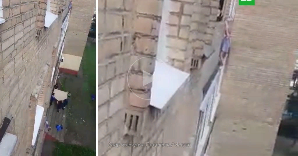 Ребенок перелез через балкон и целых 20 минут висел снаружи на руках, цепляясь ногами за выступ.