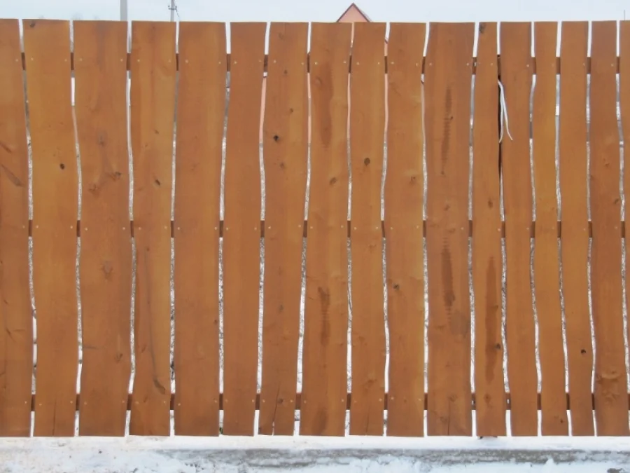 И поставил! Обычный деревянный забор. История умалчивает, почему сразу не поставил бетонный - он бы точно никуда не делся. Или сэкономить решил, или так торопился депутату угодить, или кран из-за зарослей не подогнать было.