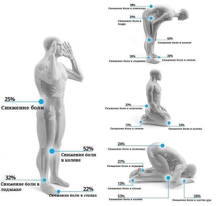 Современной наукой доказано, что совершающий намаз получает большую пользу для своего физического и психического здоровья. Некоторые из полезных для здоровья аспектов, содержащихся в намазе, таковы: 1. Люди, совершающие намаз, ведут более здоровый образ жизни. Движения, совершаемые при намазе в течение различного времени суток, снимают утомляемость сердца и способствуют постоянной бодрости человека. Время совершения намазов наиболее соответствует времени обновления кровообращения и оживления дыхания человека. 2. В мозг того, кто склоняет голову к земле восемьдесят раз в день, ритмично и обильно притекает кровь. Поэтому у совершающих намаз благодаря хорошему питанию клеток мозга реже встречаются нарушения памяти личности. 3. Благодаря постоянным наклонам и подъемам, в глазах совершающих намаз кровообращение происходит более активно. Поэтому нормализуется внутриглазное давление, обеспечивается постоянный обмен влаги в передней части глаз. Это предостерегает от различных заболеваний,