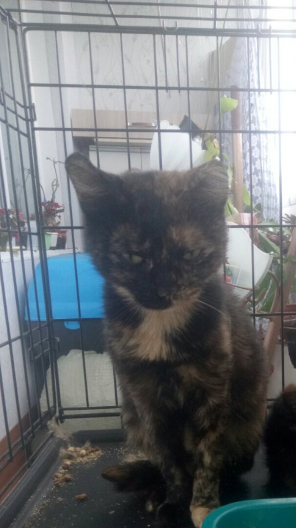 Муся-кошка, которую вместе с котятами выбросили в подвал