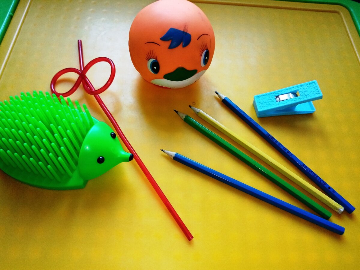 - или взрослому сделать это с ошибкой и попросить ребёнка исправить (например, в синего ёжика поставить 4 синих карандаша и 1 жёлтый)