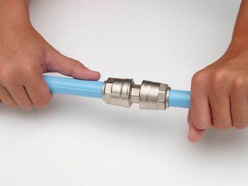 Соединение труб компрессионными фитингами – самый простой и дешевый способ. Но стоит учитывать ограничения по температуре воды, которая будет течь по трубопроводу – она не должна превышать 50°С. Недостатком является и невозможность проведения работ в стесненных условиях.