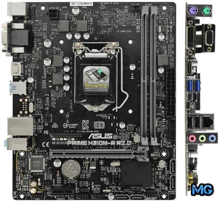 Список комплектующих начинаем с самого важного - материнской платы, к которой будут крепиться все детали вашего компьютера. Одним из самых доступных решений для сборки на процессорах Intel 8-го и 9-го поколения будет ASUS PRIME H310M-R R2.0 с ценой около 3000 рублей.