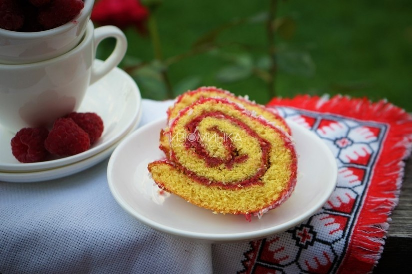 Как приготовить бисквитный рулет с малиной?