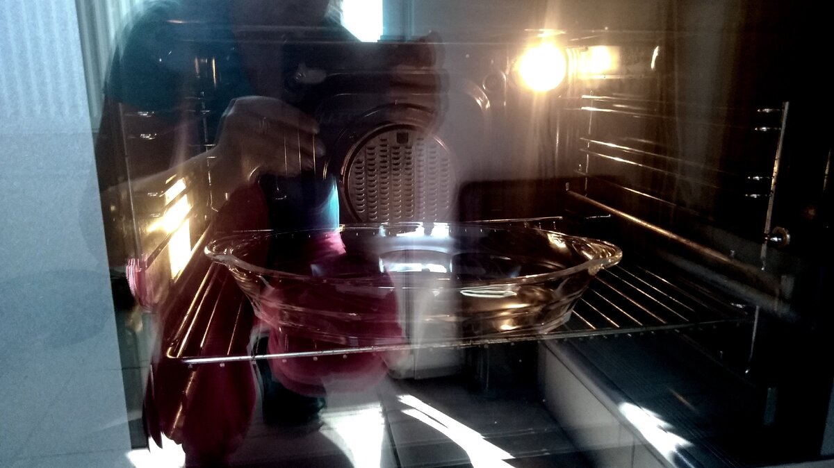 Говорят, чтобы стекло (да и вся духовка) были чистыми, нужно его протирать сразу после использования. Но как? Сразу после готовки духовка горячая, стекло если и не лопнет от влажной губки, то жир развезётся по всему стеклу тонкой плёночкой, а в следующий раз пригорит. А после уже как-то и забываешь про него, другие дела… И вспоминаешь только тогда, когда новое блюдо в раскалённую духовку ставишь. Ну точно закоптится стекло.
