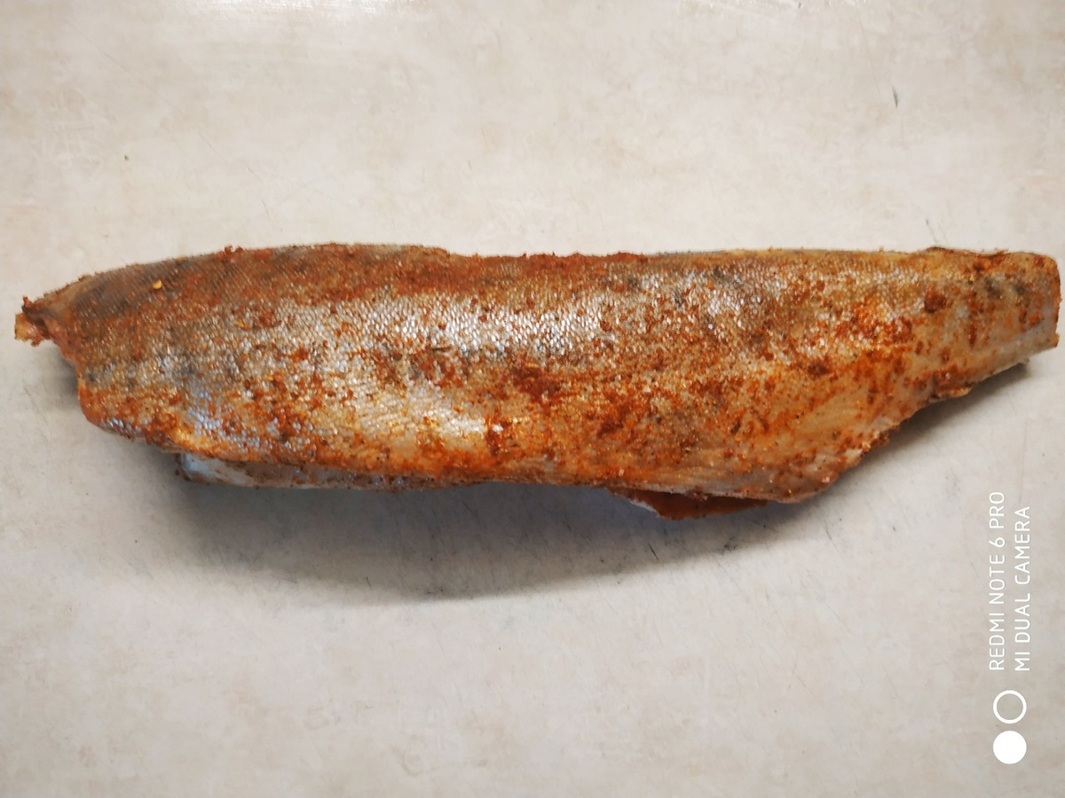Очень любим рыбу в любом ее виде: запеченную, жаренную, копченую, тушенную и т.д. Но один из самых любимых рецептов - это горбуша, запеченная в фольге. Любимый - потому что безумно вкусный, а еще бюджетный;) На нас с мужем трачу около 130-200 рублей (в зависимости каких продуктов не хватает). Прекрасная рыба для отличного ужина. Горбуша имеет очень много полезных витаминов для организма человека. Она омолаживает, улучшает кровообращение, в ней содержится кальций, благоприятно влияет на щитовидную железу (так как в ней содержится йод) и т.д. А еще в ней очень мало калорий, что способствует к похудению. И это только малая часть полезных свойств у этой замечательной рыбы. Поэтому наш ужин сегодня посвящен исключительно ей:) Для начала возьмем горбушу. Я покупала замороженную (около 400 грамм вышло на 130 рублей), а после, при комнатной температуре, часа 3-4 ее размораживала. Отрезаем все лишние плавники, и натираем ее специями, как внутри, так и снаружи, которые вам нравятся. У меня: со