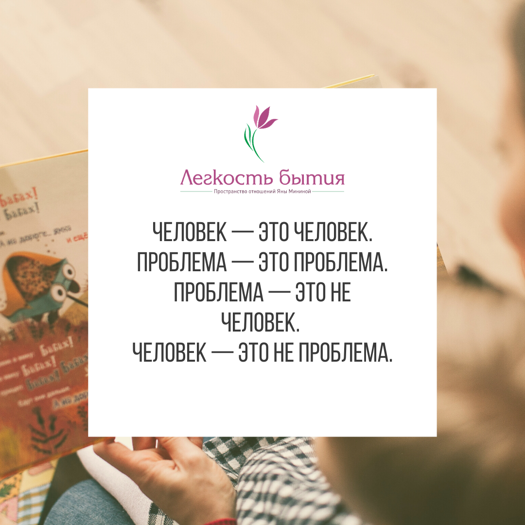 Основной посыл: «Человек — это человек. Проблема — это проблема. Проблема — это не человек. Человек — это не проблема».