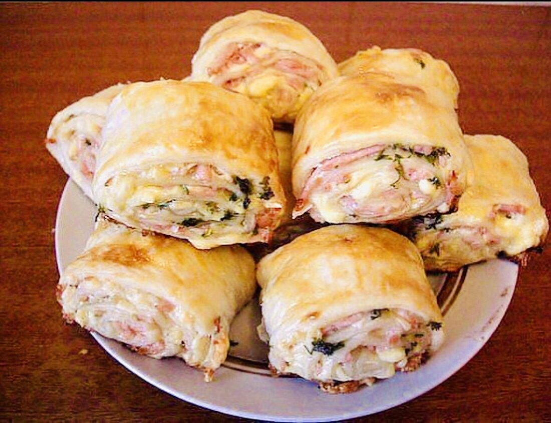 Как сделать рулетики из слоеного теста с колбасой и сыром?!!!!