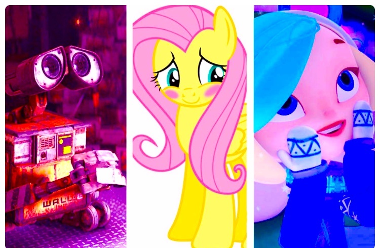 1.Флаттершай,(мой маленький пони) Даже имя этой пони открыто говорит о том, что они стеснительная! Дословный перевод ее имени звучит примерно как «Трепещущая Робость», что позволяет ощутить всю полноту её застеничивого образа. Флаттершай по праву можно назвать главной скромняшкой всея мира анимации. Но кроме скромности, Флаттершай ещё добрая, терпимая, милая и обожает животных. Прелесть, а не мультгероиня. 2.Валл-и Одинокий робот, вынужденный разбирать нескончаемые завалы мусора на Земле, встречает прекрасную новейшую модель другого робота. ВАЛЛ-И очень стеснительный! Даже то, как он учится говорить с Евой, показывает, с каким трудом развивается его навык общения на пустующей планете. Так что ВАЛЛ-И приходится преодолевать собственную нерешительность именно из-за Евы. Маленький робот, а с такой большой душой! Альфредо непростой персонаж, согласитесь? Любой станет сложным, когда окажется, что сидящая у тебя под колпаком на голове крыса может приготовить любое изысканное блюдо. Начинал