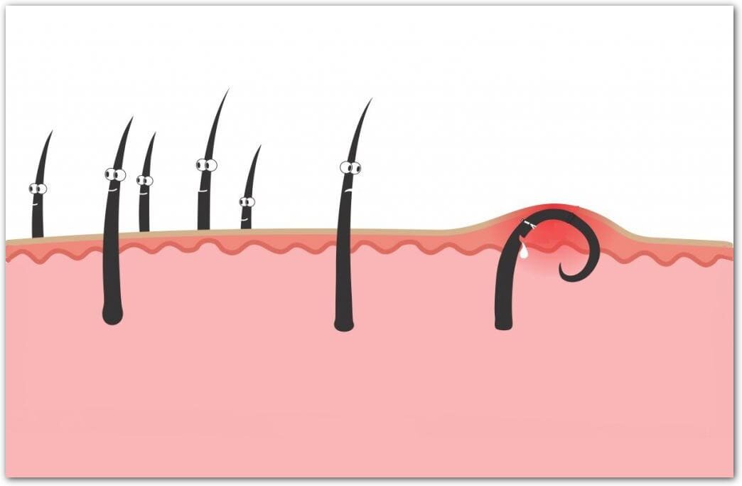 Как упоминалось выше, причина вросших волос заключается просто в том, что волосы растут под кожей. Симптомы вросшего волоса: раздражение, покалывание и зуд. А потом это нарост может превратиться в воспаленный прыщик или абсцесс.