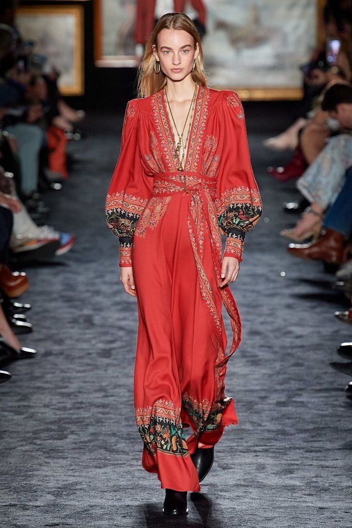 Этот стиль уже несколько сезонов не сходит с подиумов, и нет никаких признаков того, что это изменится. Достаточно упомянуть показы Etro, Chloé, Isabel Marant или Celine этого года, в которых преобладали воздушные платья с узором, лоскутные катаны с кимоно, ковбойские шляпы, ковбойские сапоги и польто, расшитые цветами, вдохновленными фольклором.