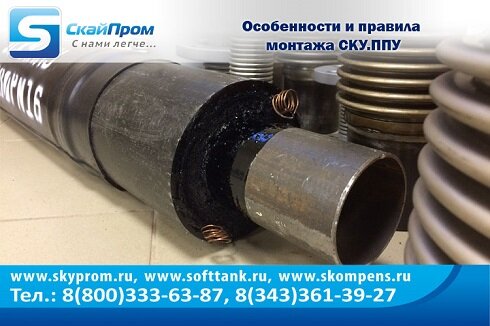 - СКУ.ППУ/ПЭ. Дополнительный защитный слой выполнен из полиэтиленовой оболочки. Данный вариант СКУ актуален при подземном бесканальном монтаже устройства.