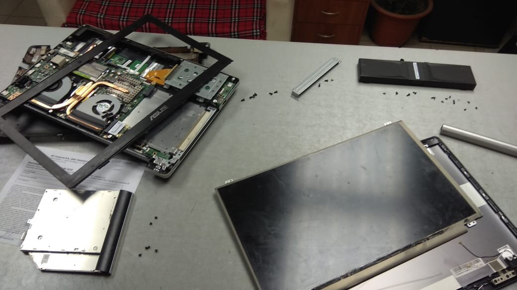Ноутбук принесли к нам в сервис с разбитым экраном. Будем менять.