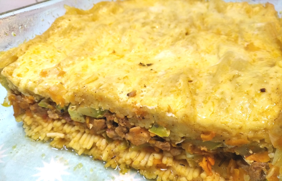 Очень вкусное сытное блюдо для всей семьи. В составе кабачки, мясо, спагетти, сыр, настоящий полноценный обед, который очень быстро и легко приготовить.