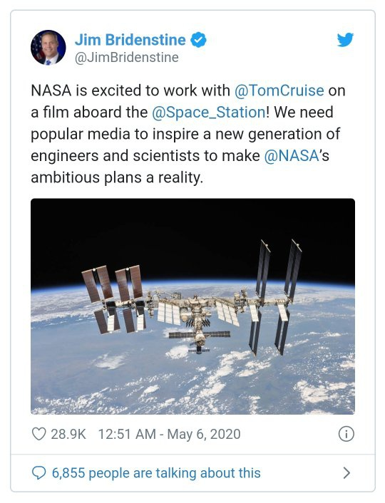 Еще не так давно мир шокировало дерзкое заявление Голливуда об их намерении снять фильм на Земной орбите. Вы все верно расслышали, 6 мая 2020 года администратор космического агентства США "НАСА", Джим Бранденстайн опубликовал в своем Твиттер аккаунте пост, в котором говорит: "НАСА рада работать с Томом Крузом на борту международной космической станции! Нам нужна поддержка популярных средств информации, чтобы вдохновлять новое поколение инженеров и ученых, которое поможет воплотить амбициозные планы НАСА в реальность". Фильм сыскал поддержку не только космического агентства США, но также основателя и генерального директора компании SpaceX Илона Маска, который проявил желание помочь в создании данного кинофильма. В главной роли выступит Том Круз. Актер известен своим рвением выполнять все трюки самостоятельно, без использования каскадеров. Данный выбор не стал неожиданным для публики. Вспомнить только, как Круз висел на взлетающем самолете, взбирался на самое высокое здание в мире или пе