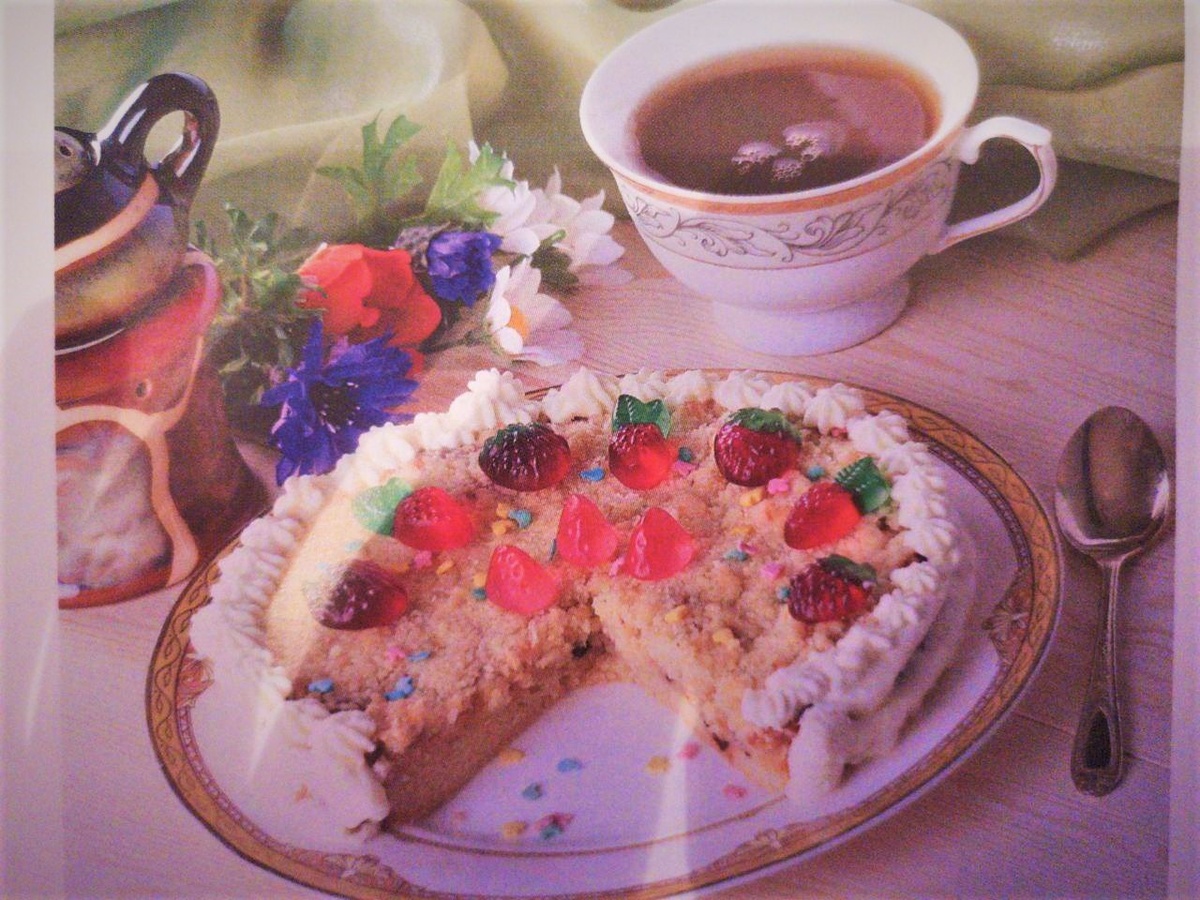 сверху посыпать оставшимся тестом. Выпекать в нагретой до 190°С