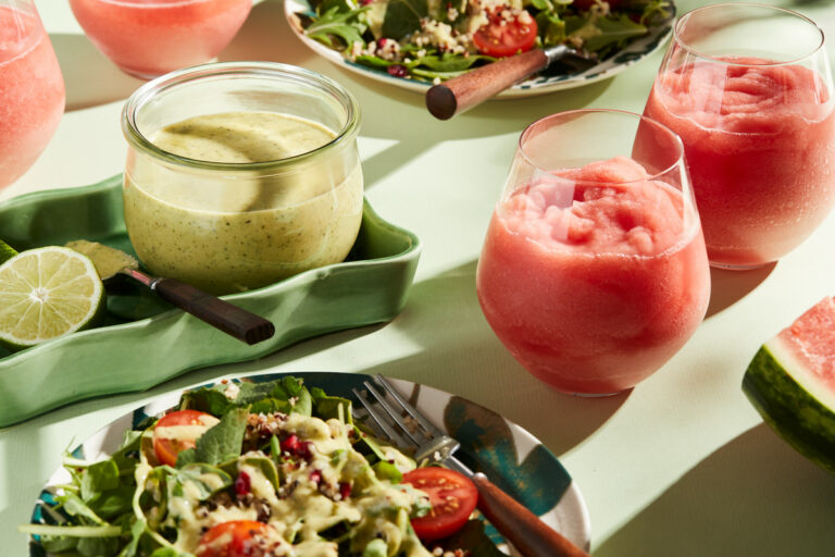 Лето включает в себя отдых, отдых, вечеринки в саду, барбекю, а также хорошие и освежающие напитки. Если вы не представляете лето без сочного арбуза, то можете попробовать подать его как освежающий напиток. Вы можете попробовать эту легкую, слегка алкогольную версию. Ингредиенты: 700 мл арбузного сока (около 2 небольших дынь) 750 мл игристого или розового вина 2 столовые ложки меда 4-6 листиков мяты Метод: Выдавить сок из арбуза. Для приготовления сока вы можете использовать принадлежности насадки для пресса цитрусовых к миксеру 5KSB4026. Перелейте сок в миску для кубиков льда и заморозьте. Поместите замороженные кубики арбуза и другие ингредиенты в емкость блендера и перемешайте на скорости 5 примерно 15-20 секунд. Подавать охлажденным. СОВЕТ: заранее приготовьте замороженные кубики арбузного сока, чтобы можно было выпить, например, в неожиданный визит или насладиться им по своему желанию каждый жаркий летний день. Хорошего вкуса и да здравствует лето! 🙂