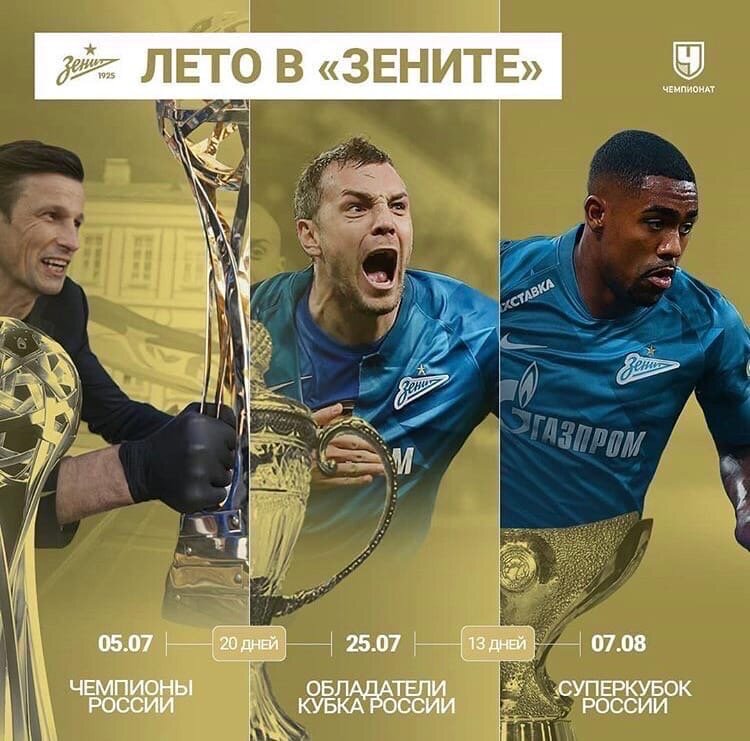 В рамках Суперкубка России Питерский Зенит встречался с Московским Локомотивом. В напряженном матче Зенит смог вырвать победу у Локомотива . Обе команды смотрелись хорошо , по статистике Локомотив владел преимуществом и имел несколько хороших моментов чтобы забить гол. Самый явный момент упустил Фёдор Смолов , во втором тайме пробивая с убойной позиции так и не смог поразить ворота питерцев. Кратко о матче: В самом начале матча после навеса Дугласа Сантоса гол со второго этажа забил Артём Дзюба.Больше в первом тайме голевых действий не было. Во втором тайме голкиперы обеих команд совершили несколько замечательных сейвов. В середине второго тайма гол забил Магомед Оздоев, отличным ударом из-за пределов штрафной рикошетом от каркаса ворот . Локомотив смог ответить лишь одним забитым голом , после розыгрыша углового Чорлука точным ударом головой со второго этажа поразил ворота Зенита. За этот сезон Зенит смог выиграть все 3 трофея в рамках РПЛ. Будем надеяться на хорошее выступление Р