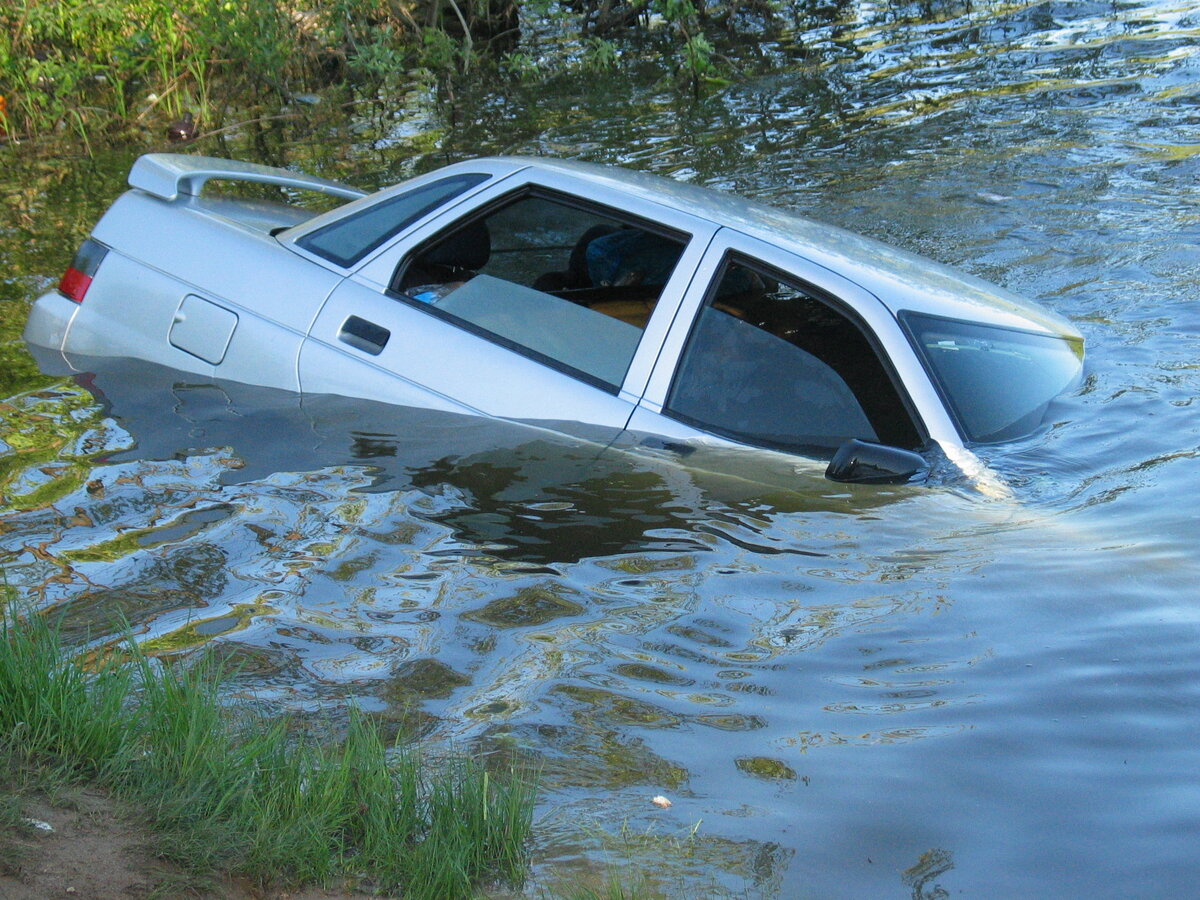 Запомните - машина может продержаться на воде не более, чем 2 минуты (и то, если повезло) Эти 1-2 минуты, пока вода будет пробиваться через все резинки и щели, нужно использовать для того, что бы отстегнуться и попытаться покинуть авто, не в коем случае не поддавайтесь панике, счет идет на секунды Если Авто еще не погрузился в воду больше чем на 30-50% - можно попробовать открыть дверь, но надо понимать, что как только Вы это сделайте вода заполнит авто очень быстро и авто быстро пойдет ко дну, если Вы не один, то надо убедиться, что все в авто готовы к такому повороту событий Если у Вас двери с автоматической блокировкой - попробуйте открыть их, центральный замок и электрические элементы сохраняют какое то время работоспособность Когда авт