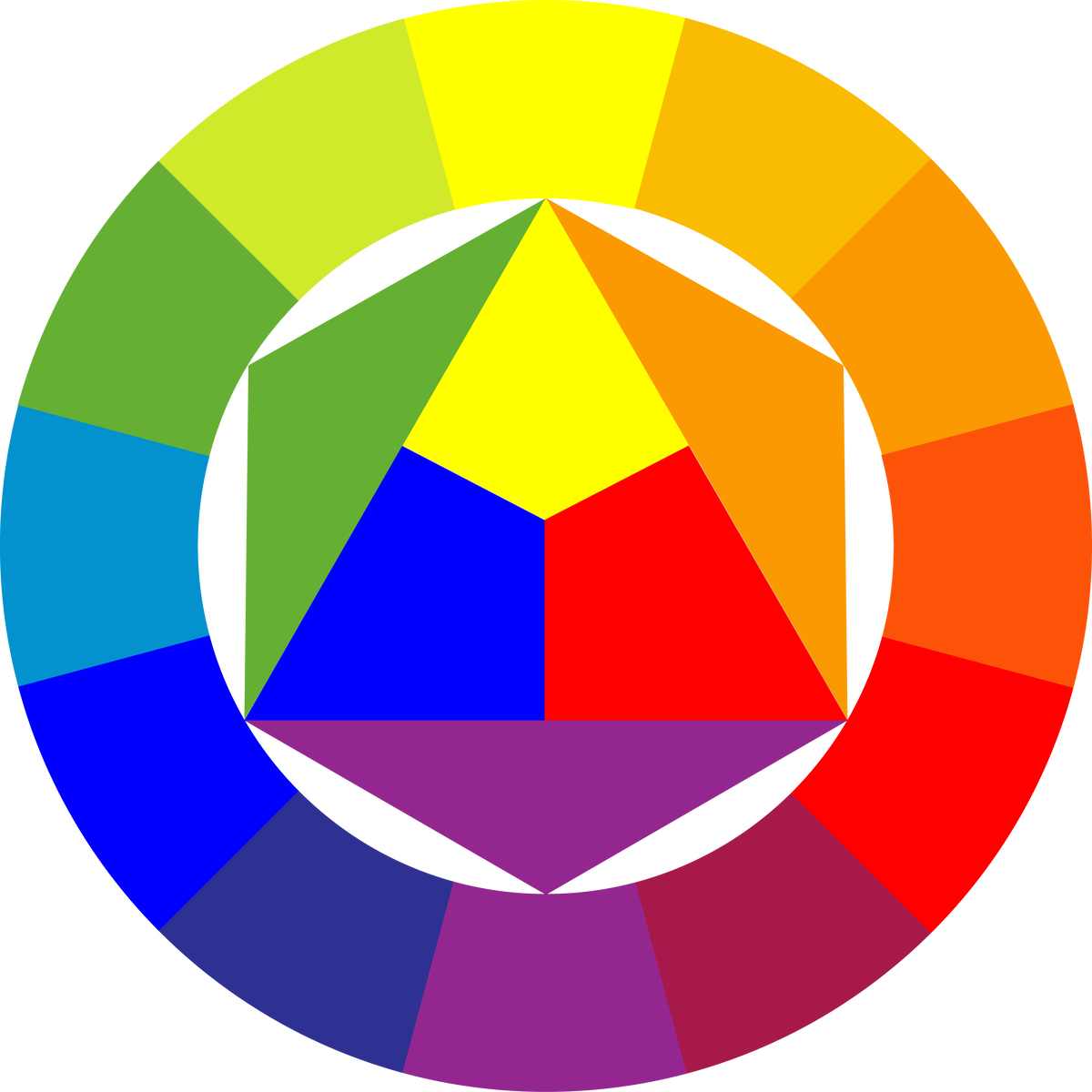 Это сочетание трех цветов, которые в равной степени отстоят друг от друга на цветовом круге. Треугольник можно поворачивать по кругу, и его вершины всегда будут указывать на сочетаемые цвета.