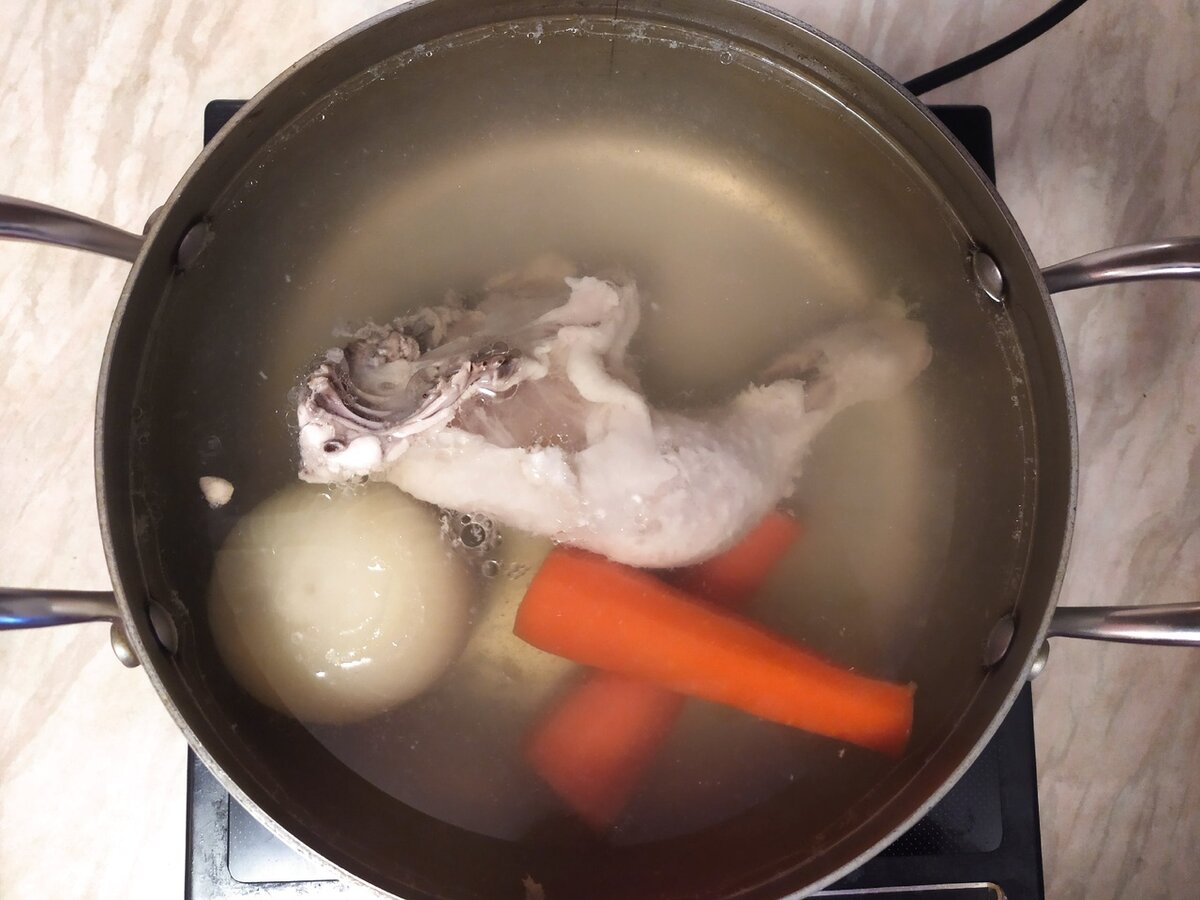 Привет, ребятки. Правильно сваренный куриный бульон является не только важной составляющей в приготовлении супов или соусов, но и потрясающим самостоятельным блюдом. Нам понадобятся: По желанию также можно добавить стебель сельдерея, душистый перец и лавровый лист. Но при этом нужно учитывать, что вкус бульона станет пряным. Перед тем, как начать готовить куриный бульон, нужно понимать, что быстро вы его не сварите, поэтому планируйте время так, чтобы в запасе у вас было 2-3 часа, по возможности больше. Налейте в кастрюлю только холодную воду, опустите туда курицу, лук, морковь и поставьте на очень медленный огонь. Секрет прозрачного бульона в том, чтобы на протяжении всего времени готовки он не бурлил и не кипел. Нагрев должен быть настолько минимальным, чтобы пузырьки поднимались очень медленно. Накройте кастрюлю крышкой, чтобы сохранить объём жидкости. Ближе к концу готовки хорошо посолите, соль подчеркнёт вкус, сделает его насыщенным и выраженным. Если вы хотите, чтобы бульон