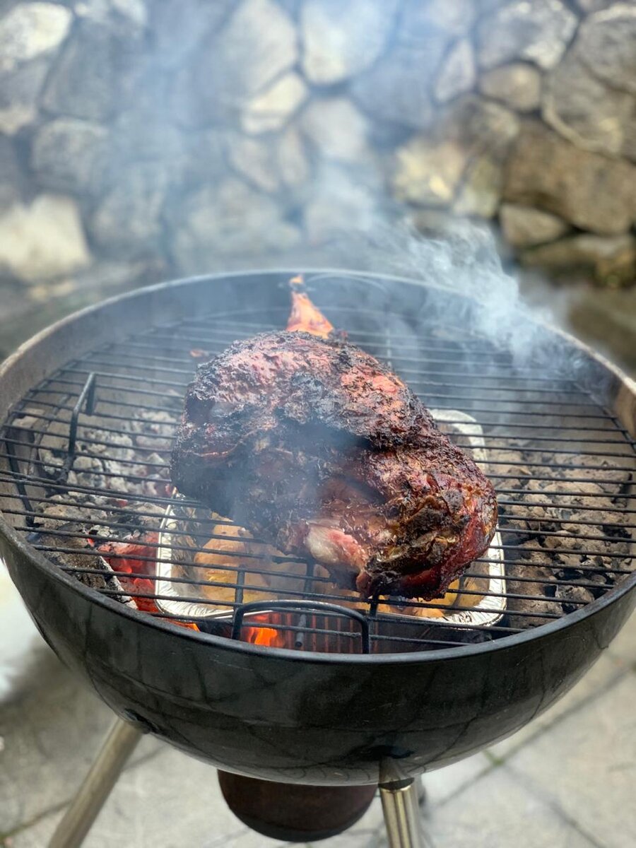 Зачастую, при возникновении повода для сбора гостей, возникает вопрос - "что готовить и чем удивить?" Один из вариантов, который будет беспроигрышно смотреться на столе, я опишу ниже. Вариант подойдет, если гостей 8-10 человек. Речь пойдет о целой бараньей ноге с чесноком и черносливом на угольном гриле с гарниром из целого картофеля. Что потребуется? Главный ингредиент - нога молодого барашка, какая именно часть - увидите на фото. К выбору стоит подойти достаточно ответственно, оптимально будет взять ногу весом 3,5-4 кг, на наружной поверхности должен быть равномерный пласт жира с местами чуть просвечивающимися мясными участками. Если вы ни разу не вырезали лимфоузлы и понятия не имеете что это и как выглядит, то доверить этот процесс лучше непосредственно человеку, который в этом разбирается. Как замочить и подготовить? Начать нужно с того, что с внешней поверхности нам нужно срезать небольшое количество жира (100 - 150 гр) и отложить в отдельную емкость. Для чего - расскажу позже.