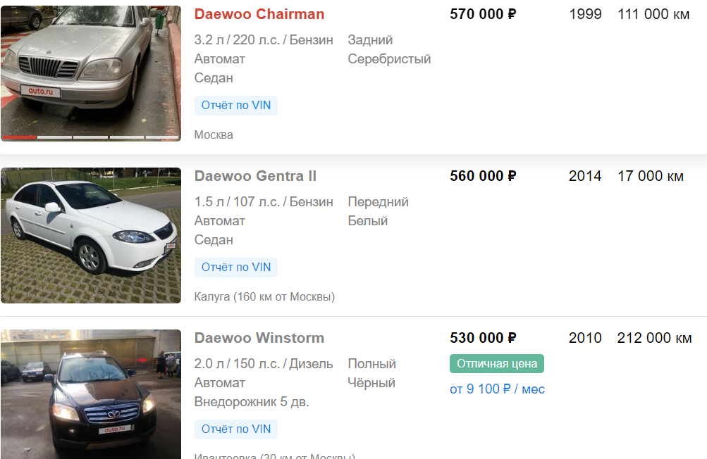 Дэу, наверное, единственный бренд, побывавший в нашей стране, к которому вообще нет претензий - Неския, Матизы - уже легендарные автомобили. Гентра, Ланос, Эсперо - не самые плохие варианты. Много ли бюджетных автомобильных марок пришедших в Россию, которые выдали бы 5 крепких, хороших бюджетных автомобиля, которые постоянно попадают в подборки авторов Дзена? А что там среди дорогих вариантов? Верх рынка, так сказать. Здесь ничего удивительно - никаких коллекционных Нексий или Матизов. Шарман - корейский Мерседес, который в основном продавался под брендом SsangYong, на борту - 3.2л на 220 лошадей из первой M-ки. Это, кстати, достаточно редкая версия и без того редкого Шармана в России. Она удлиненная. По ПТС - 7 владельцев, владелец пишет, что их 3. Гентры производили на УзДэу до ребренда до усрачки, по этому куча вариантов будет от ватников, которые купили эти автомобили втридорога новыми и пытаются продать за ту же цену убеждая всех, что это новый автомобиль. Гентра морально устареа