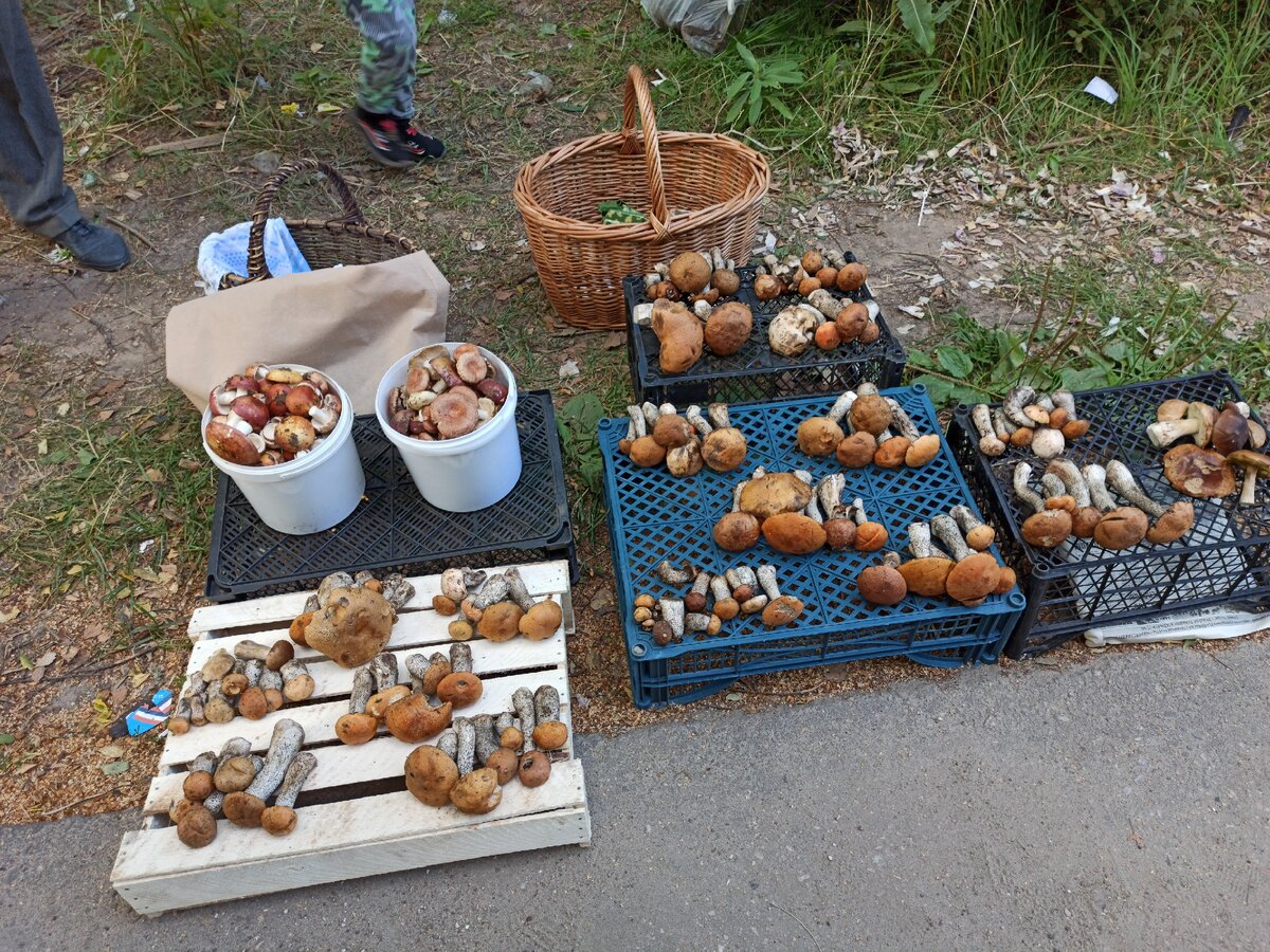 Остановилась, чтобы узнать цены, покупать не собиралась, у нас в лесу грибов полно. Ведро сыроежек - 150р. в лесу их сейчас очень много, поделюсь как-нибудь нашим фирменным рецептом👍. Белые и подосиновики - 180р за кучку. Вес назвать не смогли, 5-6 штучек разного размера в эту стоимость входит.