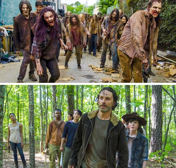 1. Во время съемок сериала "Ходячие мертвецы" актеры, игравшие "живых", обедали отдельно от актеров-"зомби". Если уж погружаться в роль, то погружаться полностью. 2. Многие актеры сериала — иностранцыНесмотря на то, что шоу снимается в США, большинство актеров родом не оттуда. Эндрю Линкольн (Рик) и Лорен Коэн (Мэгги) приехали из Великобритании, Стивен Юн (Гленн) родился в Южной Корее, а Данай Гурира выросла в Зимбабве, хоть и родилась на территории США.3. Актеры, играющие «ходячих», посещают специальную школуЧтобы идеально сыграть «ходячих», актерам приходится посещать курсы, где их учат, как правильно передвигаться, рычать и накладывать грим. По итогу курсов они проходят аттестацию, показывая, как выглядят в гриме и насколько естественно передвигаются в нем. 4. За весь сериал ни разу не было произнесено слово «зомби»Хоть сериал и рассказывает об атаке зомби, это слово не упоминается в нем ни разу. Оживших мертвецов называют «ходячими». Создатели прокомментировали это тем, что хотели