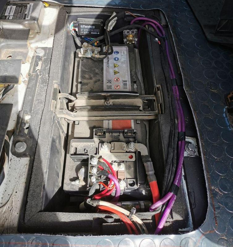 Вот так выглядит аккумуляторное хозяйство в машине. Аккумулятор у Boxer расположен под ногами водителя. Удобно, не надо копаться под капотом.